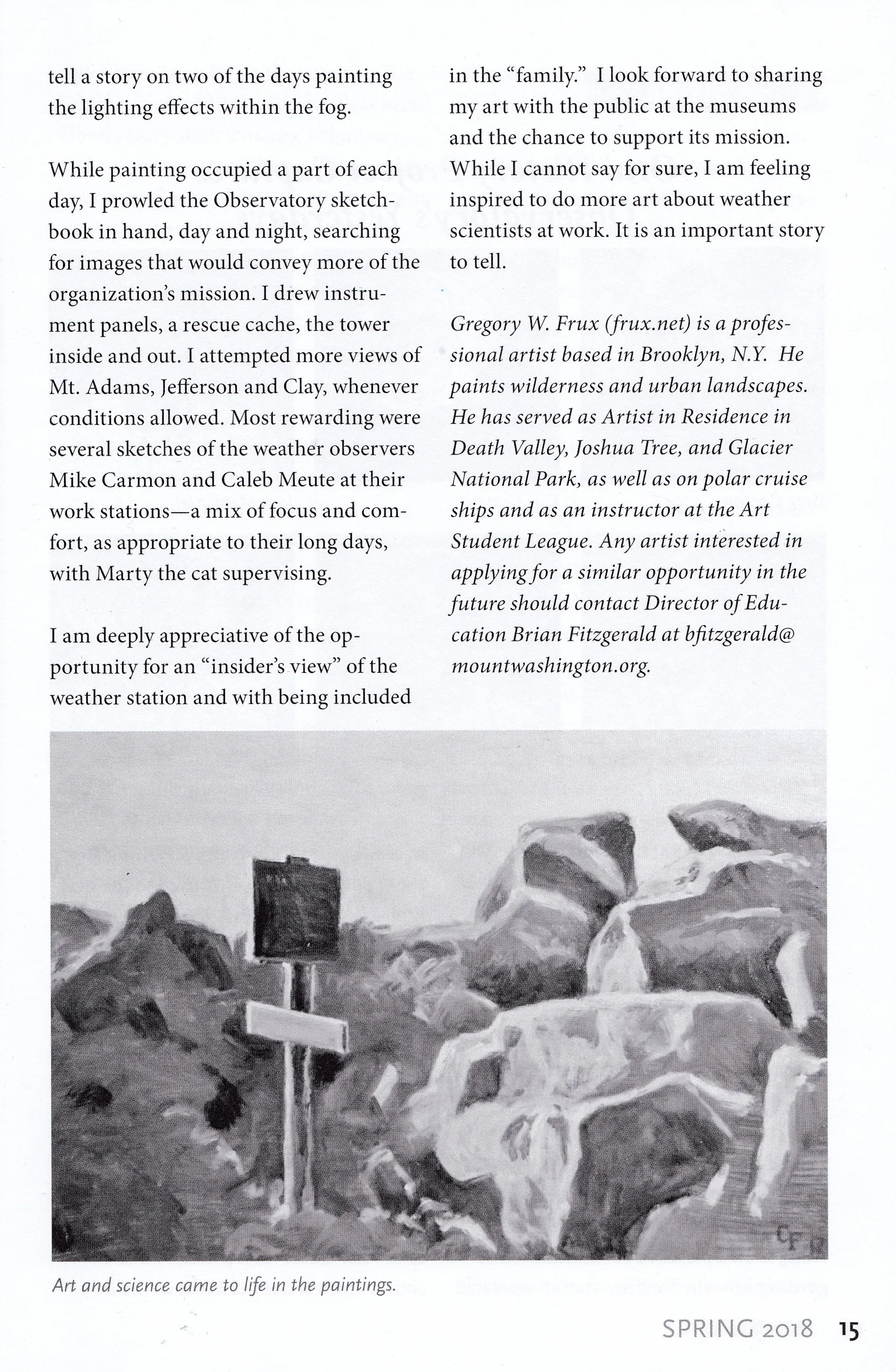 Artist-in-Residence, Mount Washington Observatory, White Mountains, NH 2017
